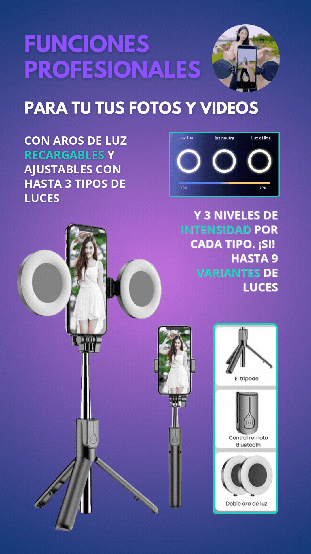 Te presentamos nuestro selfie stick, que te ayudará a mejorar tus fotos y videos.
